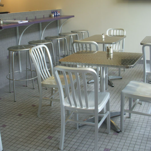 Anna 1004 serves as both, a modern and traditional chair, adaptable to almost any types of spaces. This beautiful chair is completely brushed in aluminum, being framed in square tube aluminum, and having its eat and back made of aluminum as well. This chair is available in its original 00 brushed aluminum color, and in custom RAL colors. Measurements: