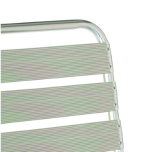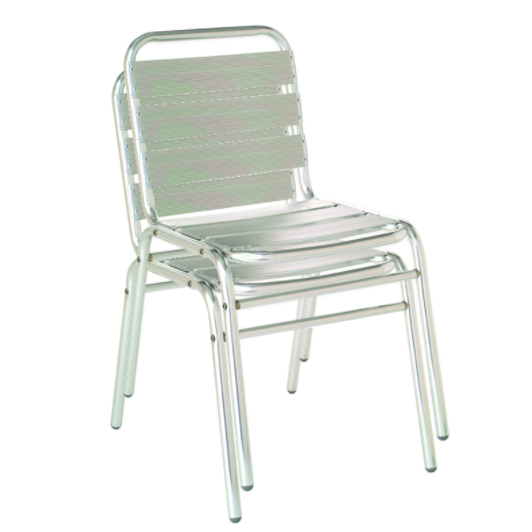 The Flora 1000 is an indoor and outdoor stacking side chair, framed in tubular aluminum,a nd with its seat and back made of aluminum slats. This chair is available in 00 polished aluminum. Measurements: