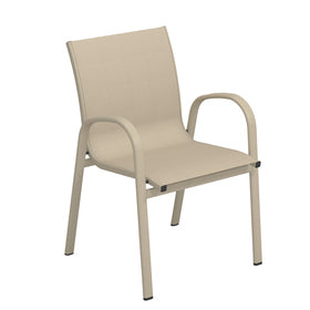 This beautiful indoor and outdoor stacking armchair is framed in aluminum, while its seat and back are manufactured in textilene fabric. Special ship order finishes for this chair are available in the following colors: