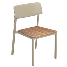 Shine 247T is an indoor and outdoor stacking side chair, framed in aluminum. The seat and back of this chair are manufactured in aluminum and teak, respectively. Special order ship finishes for this chair are available in the following colors: