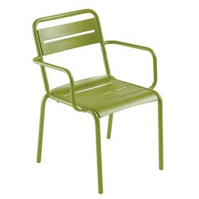 Beautiful aluminum stacking chair, available to match both in outdoor and indoor environments. The chair is originally in green color, but there are also finishes available in blue, brown, dark gray, light gray, black, yellow, aquamarine, mustard, red and emerald. The chair is a modern design, completely made of aluminum.